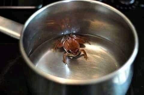 एक भगौने में पानी डाला और उसमे एक मेढक छोड़ दिया। फिर उस भगौने को आग में गर्म किया। जैसे जैसे पानी गर्म होने लगा, मेढक पानी की गर्मी के हिसाब से अपने शरीर को तापमान के अनकूल सन्तुलित करने लगा। मेढक बढ़ते हुए पानी के तापमान के अनकूल अपने को ढालता चला जाता है और फिर एक स्थिति ऐसी आती है कि जब पानी उबलने की कगार पर पहुंच जाता है। इस अवस्था में मेढक के शरीर की सहनशक्ति जवाब देने लगती है और उसका शरीर इस तापमान को अनकूल बनाने में असमर्थ हो जाता है…