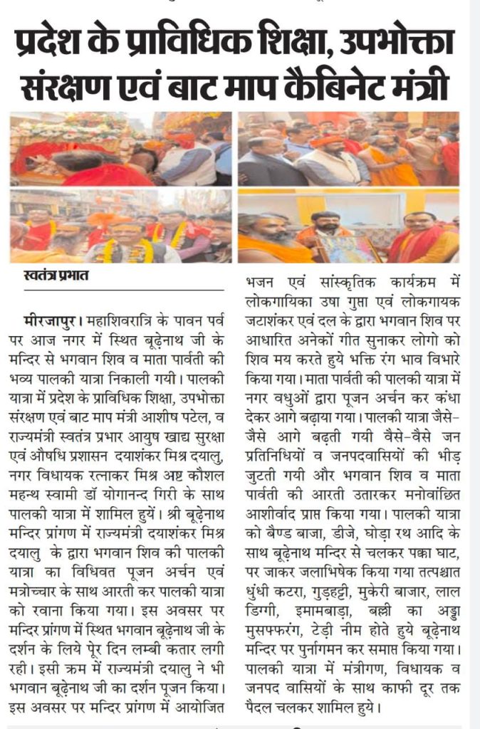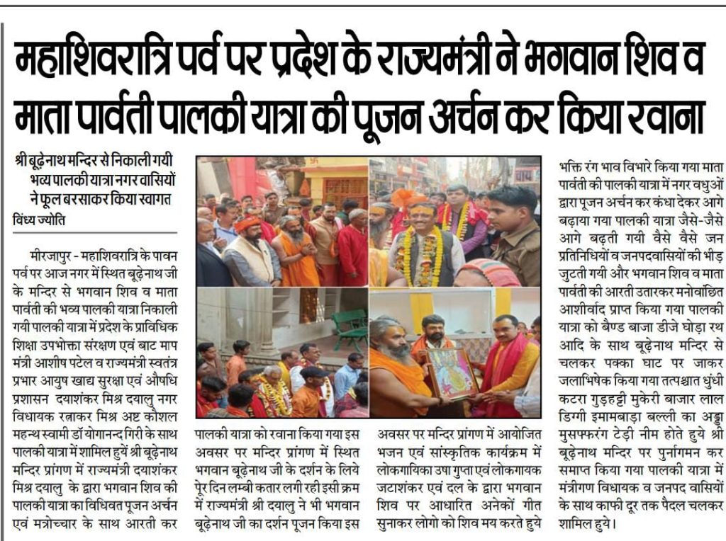• महाशिवरात्रि उत्सव 2024 के प्रथम दिन श्री बूढ़ेनाथ महादेव का गन्ने के रस से अभिषेक March 2, 2024